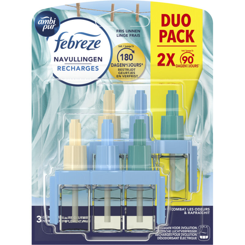 Ambi pur 3volution fris linnen bestrijdt voortdurend geurtjes en wisselt tussen 3 elkaar aanvullende parfums voor een frisheid die je blijft ruiken. Bestrijdt voortdurend geurtjes Gaat tot 90 dagen lang mee Een versterkte geur die zich verder verspreidt 3volution wisselt elke 45 minuten tussen de elkaar aanvullende parfums Gaat tot 90 dagen lang mee (indien 12 uur per dag gebruikt op de laagste stand). laat je overspoelen door een gevoel van rust terwijl deze zuivere, zachte geur de lucht vult. Met gewone geurverspreiders wennen we snel aan geurtjes en vallen ze niet meer op. Ambi Pur 3volution vernieuwt de frisheid door voortdurend en automatisch elke 45 minuten tussen 3 elkaar aanvullende, kwaliteitsvolle geuren af te wisselen. Gebruik de Ambi Pur 3volution navullingen met de 3volution elektrische verdeler om je huis te vullen met een frisheid en geur die je dag na dag, week na week blijft ruiken. Met 3volution kun je ook de parfumsterkte aanpassen, zodat je de sfeer kunt creeren die je wilt, wanneer je dat wilt.