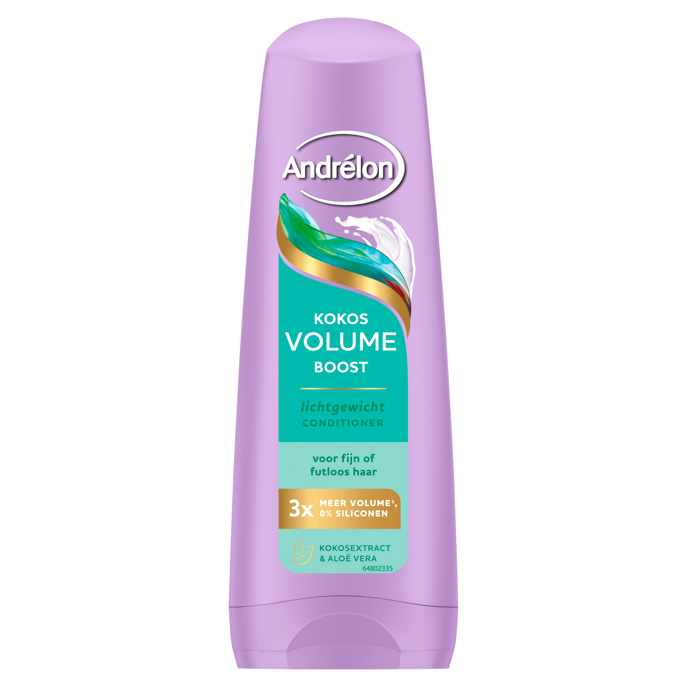 De producten uit de Andrélon Kokos Volume Boost-lijn zijn speciaal ontwikkeld om fijn, futloos en slap haar te transformeren naar volumineus haar. Gebruik voor de ideale routine ook de andere haarverzorgingsproducten uit deze lijn. De Kokos Volume Boost Shampoo reinigt en maakt je haar luchtig; het Kokos Volume Boost Masker hydrateert zonder te verzwaren; de Kokos Volume Boost Scrub geeft volume vanaf de haaraanzet en de Kokos Volume Boost Spray zorgt voor extra volume, textuur en glans.