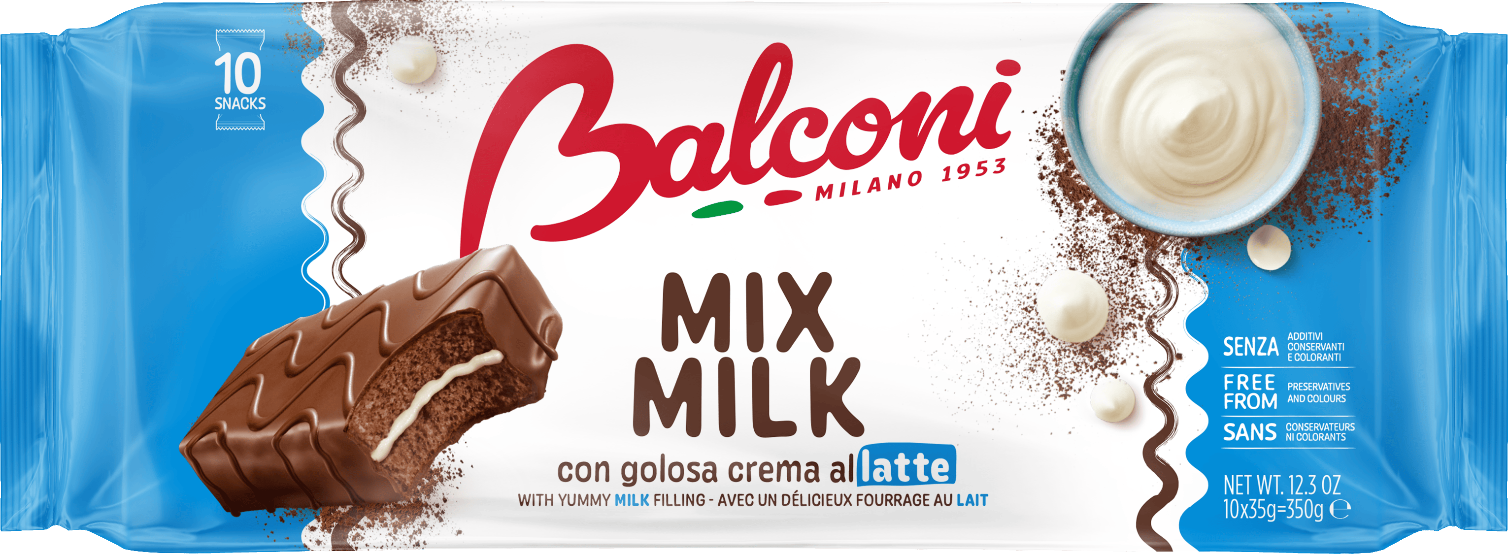 Ingrediënten: suiker; plantaardige vetten (palm, palmhart, cocosnoot, zonnebloem in verschillende verhoudingen); glucose-fructosesiroop; TARWEmeel (10.5%); versen EIEREN; MELKpoeder (6.1%); magere MELK (5.5%); MELK (3.6%); magere cacaopoeder (3%); magere MELKpoeder (2.5%); extra pure chocolade (1.6%) (suiker, cacaomassa, cacaoboter, emulgeermiddel: SOJAlecithine; aroma's); MELKeiwit; aroma’s; emulgatoren: mono- en diglyceriden van vetzuren, SOJAlecithine; rijsmiddelen: ammoniumcarbonaten, natriumcarbonaten, difosfaten; zout.