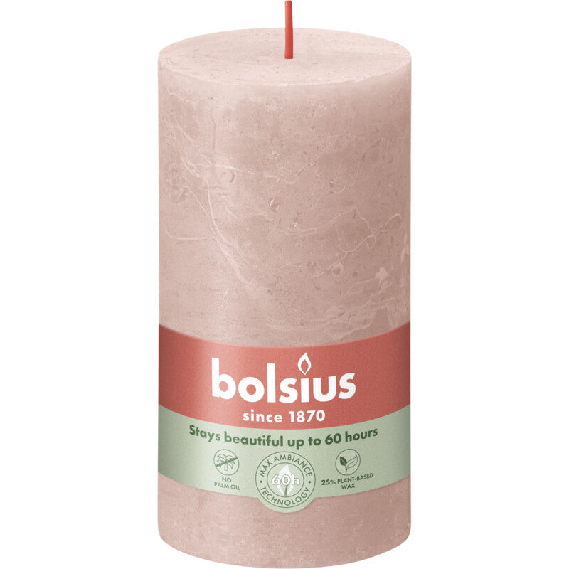 Bolsius - Rustikale Kerze - hellrosa - 13cm. * Perfekte Flamme bis zu 60 Stunden * Mit natürlichem veganem Wachs * Ohne Palmöl und ohne tierische Fette * Rustikales Finish