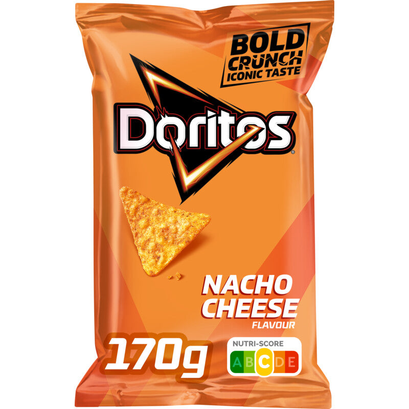 Doritos is een superkrokante tortillachip gemaakt van versgeroosterde maïs, met de heerlijke smaak van Nacho Cheese. Maïschips met de smaak van Nacho Cheese Verpakt onder beschermende atmosfeer