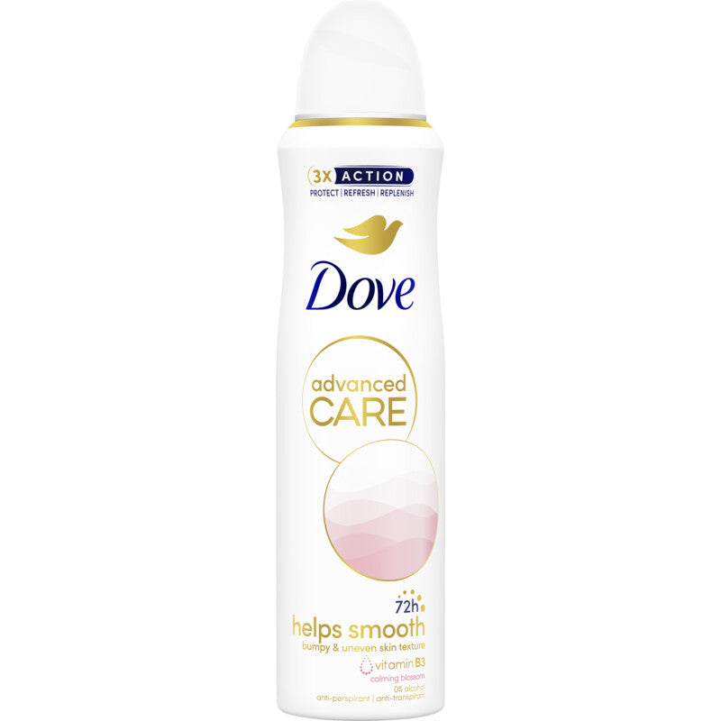 Dove Advanced Care beruhigendes Blüten-Antitranspirant-Deodorant mit dem dezenten Duft von Rosen- und Apfelblüten, angereichert mit Omega 6. * Hilft, Reizungen unter den Achseln nach der Rasur zu reduzieren * Mit Doves einzigartiger 1/4 Feuchtigkeitscreme für 72 Stunden Schutz * Eine milde Formel für Ihre Achseln, mit 0 % Alkohol * Spendet Feuchtigkeit und pflegt die empfindliche Achselhaut