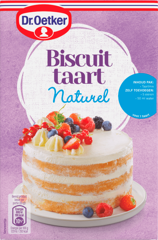 „Mit der Backmischung Dr. Oetker Biscuit Taat backen Sie im Handumdrehen einen leichten Biskuitkuchen, den Sie anschließend nach Belieben dekorieren können.“