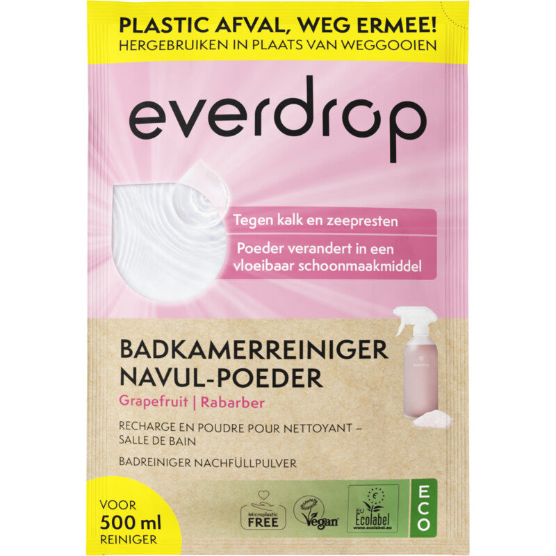 Everdrop Badreiniger-Nachfüllpulverbeutel (Pfefferminz-Rosmarin-Duft) 30 g. *Kraftvoller Badreiniger zum Mischen * Stark gegen Kalk und Seifenreste * Jede Nachfüllung spart Plastikmüll * 1 Power-Pulver ergibt 450 ml Badreiniger