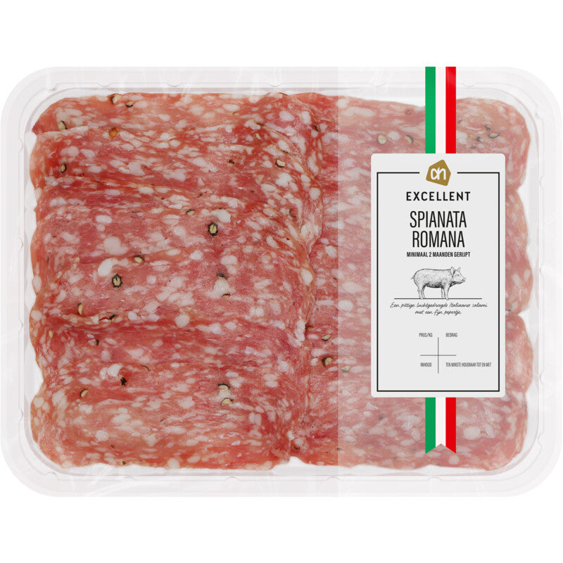 Zutaten: Schweinefleisch, Salz, Gewürze (darunter 0,6 % schwarzer Pfeffer, 0,03 % weißer Pfeffer), Dextrose, Konservierungsmittel (Natriumnitrit [E250], Kaliumnitrat [E252]), Antioxidationsmittel (Natriumascorbat [E301]).