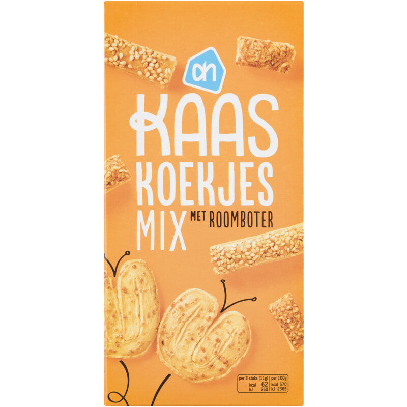Geniet van de authentieke smaak van Nederland met de Kaaskoekjes mix met roomboter van Albert Heijn. Deze kaaskoekjes zijn perfect als snack of bij de borrel en brengen een stukje Hollandse gezelligheid naar jouw tafel, waar je ook bent!