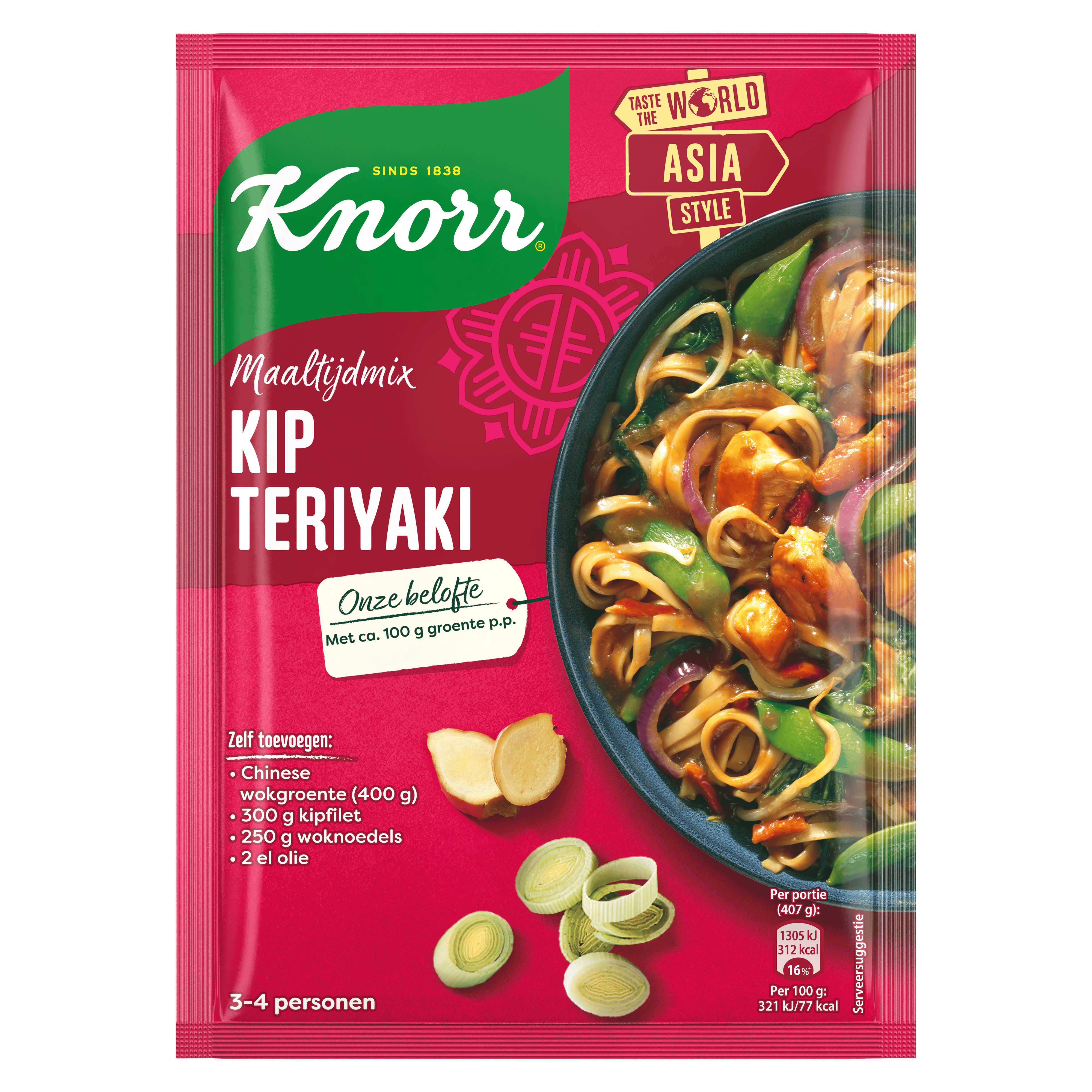 Ontdek de Knorr Kip Teriyaki Maaltijdmix, een snel en makkelijk gerecht met lekker veel groente. Laat je inspireren door Knorr en zet de lekkerste gerechten met gemak op tafel. Met Knorr Kip Teriyaki Maaltijdmix maak je een gerecht dat geschikt is voor 3 tot 4 personen. Met behulp van de maaltijdmixen van Knorr zet je in een handomdraai een heerlijke maaltijd op tafel, met lekker veel groente. Zo bevat deze Kip Teriyaki ca. 100 gram groente per persoon. Deze mix bestaat uit zorgvuldig gedroogde en gemengde kruiden en specerijen, zonder toegevoegde smaakversterkers.
