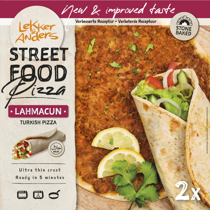 Handgemachte türkische Pizza mit einem knusprigen und extra dünnen Boden, der den Geschmack des würzigen Belags verstärkt. * Einfache Zubereitung in der Pfanne, im Ofen oder in der Mikrowelle * Köstlich mit Tomaten-, Paprika-, Zwiebel-, Salat- und Knoblauchsauce * 100 % frische und natürliche Zutaten * Jetzt auch als Vorteilspack erhältlich! Genuss für die ganze Familie!