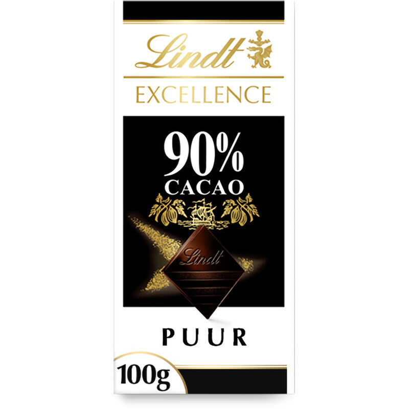Die Lindt Excellence Zartbitterschokolade besteht aus zarter Zartbitterschokolade mit 90 % Kakao, mit kräftigem Aroma und vollem Kakaogeschmack: ein Genuss für alle Sinne.