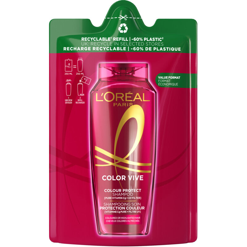Minder plastic, meer voordeel. Word ook een shampoo refiller! Deze shampoo is speciaal ontwikkeld om de kleur van gekleurd haar of highlights te beschermen.Refill navulbare shampooverpakking van 250ml - 60% minder plasticGeschikt voor gekleurd haar of highlightsIntense kleur tot 40 wasbeurtenVerrijkt met pure vitamine Cg en uv-filters voor extra bescherming