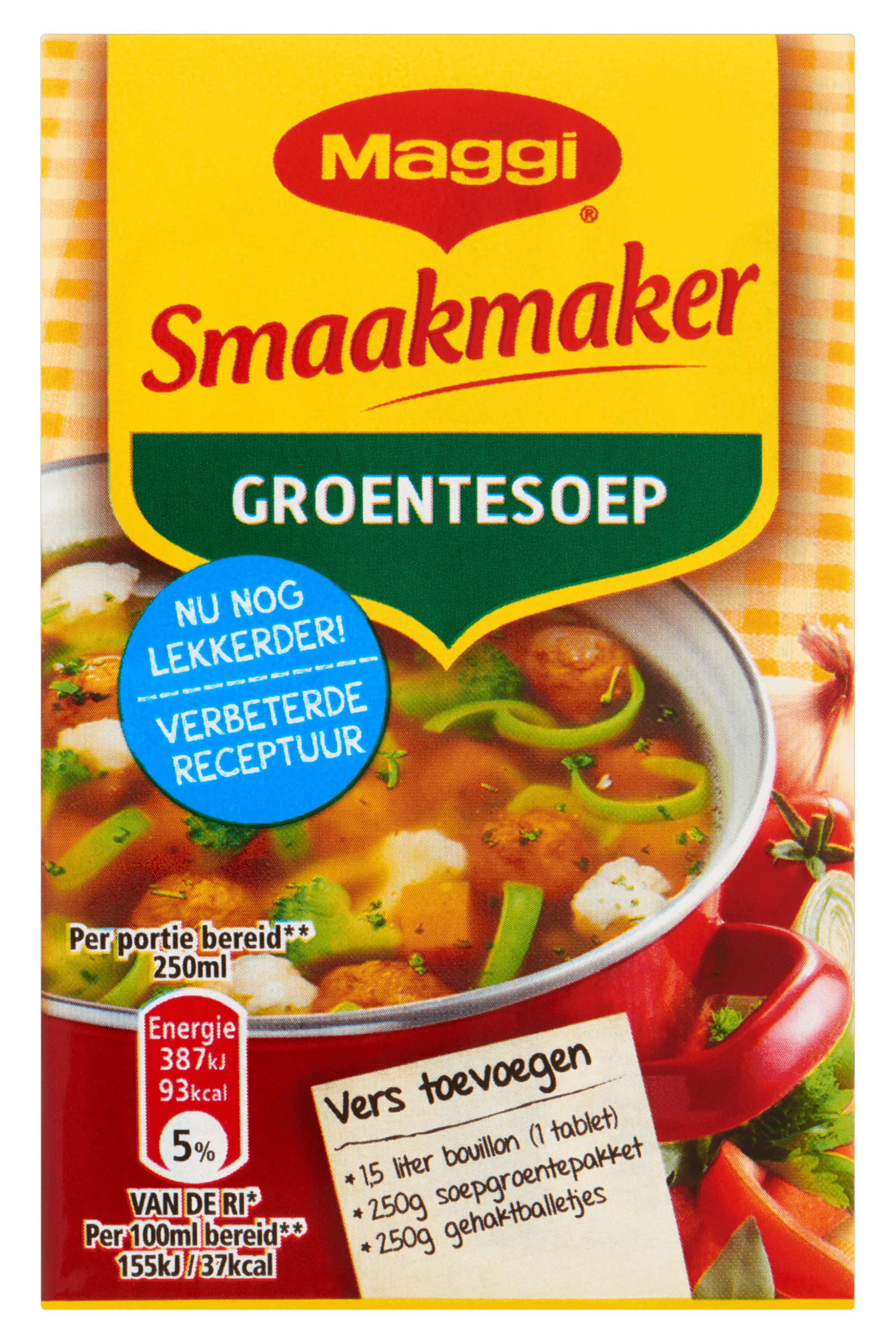 Mit der MAGGI Gewürz-Gemüsesuppe können Sie Ihrer Mahlzeit-Suppe ganz einfach zusätzlichen Geschmack verleihen.