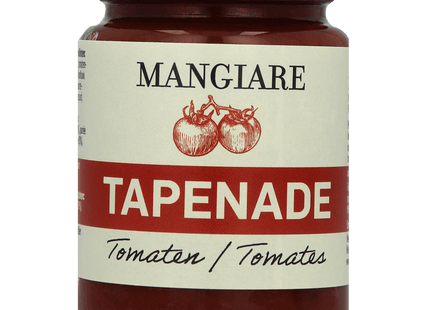 Mangiare Tomatentapenade, gemaakt van zongerijpte en zongedroogde tomaten is vol van smaak en nets als de olijventapendae heerlijk met vers stokbrood, op een toastje, om mee te dippen of door een salade. Ook ideaal om te gebruiken als ingrediënt voor verschillende gerechten.