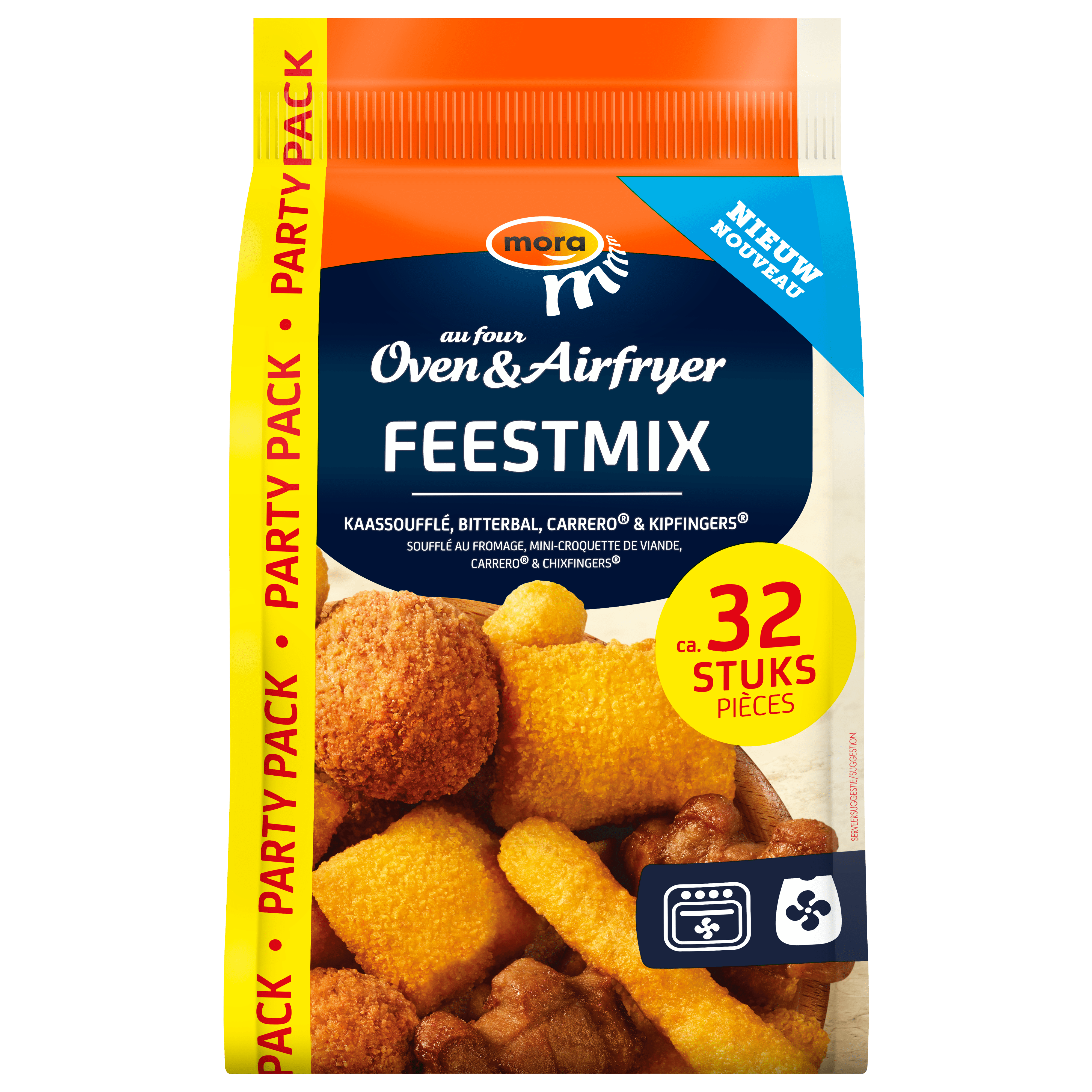 Heeft u vragen of opmerkingen? Wij vernemen het graag. Indien u deze verpakking bewaart, kunnen wij u zo goed mogelijk informeren.Ga voor info over ons duurzaamheidsbeleid naar mora.nl/duurzaamheidZak bij plastic afvalEen heerlijke Feestmix met Kaassoufflés, Bitterballen, Carrero's® en Kipfingers®. Gemakkelijk te bereiden en ideaal voor al je feestjes. Niet te geloven, zo uit de Airfryer of oven!Ontdek de Mora Oven & Airfryer Feestmix 32ST – de perfecte traktatie voor jouw volgende feestje! Deze feestmix biedt een smakelijke combinatie van klassieke snacks die iedereen leuk vindt. Of je nu een verjaardagsfeestje, een borrel of gewoon een gezellige avond thuis plant, deze mix is in een handomdraai bereid.Waarom kiezen voor de Mora Feestmix? Heerlijke variëteit: Met kaassoufflés, bitterballen, Carrero’s® en kipfingers is er voor ieder wat wils. Gemakkelijk te bereiden: Perfect voor in de airfryer of oven, zo gepiept zonder gedoe. Dit product is ideaal voor Nederlanders in het buitenland en expats die op zoek zijn naar een stukje thuis. Geniet van vertrouwde smaken die vaak moeilijk te vinden zijn. Bestel de Mora Oven & Airfryer Feestmix eenvoudig via Dutchshopper en laat je verrassen door de kwaliteit en smaak van deze populaire snacks die je herinneren aan gezellige Nederlandse avonden.Aarzel niet langer!...