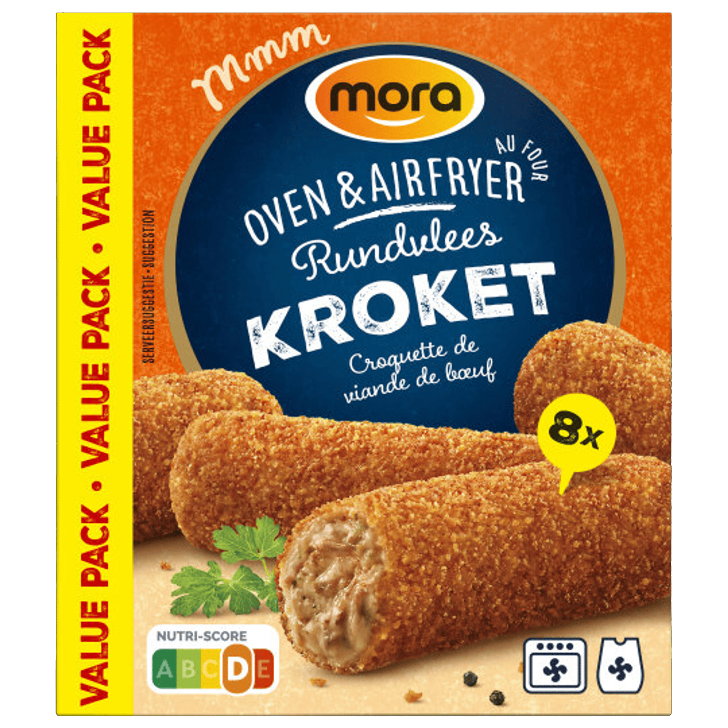 Een heerlijke rundvleeskroket royaal gevuld met een smeuïge ragout bereid met mals draadjesvlees, in een mooi goudbruin, krokant korstje. Perfect voor bij de frietjes of op een broodje. Verpakking bij oud papier Recyclebare verpakking Droge, schone verpakkingen mogen bij het oud papier. Zonder kunstmatige geurstoffen Ga voor info over ons duurzaamheidsbeleid naar mora.nl/duurzaamheid
