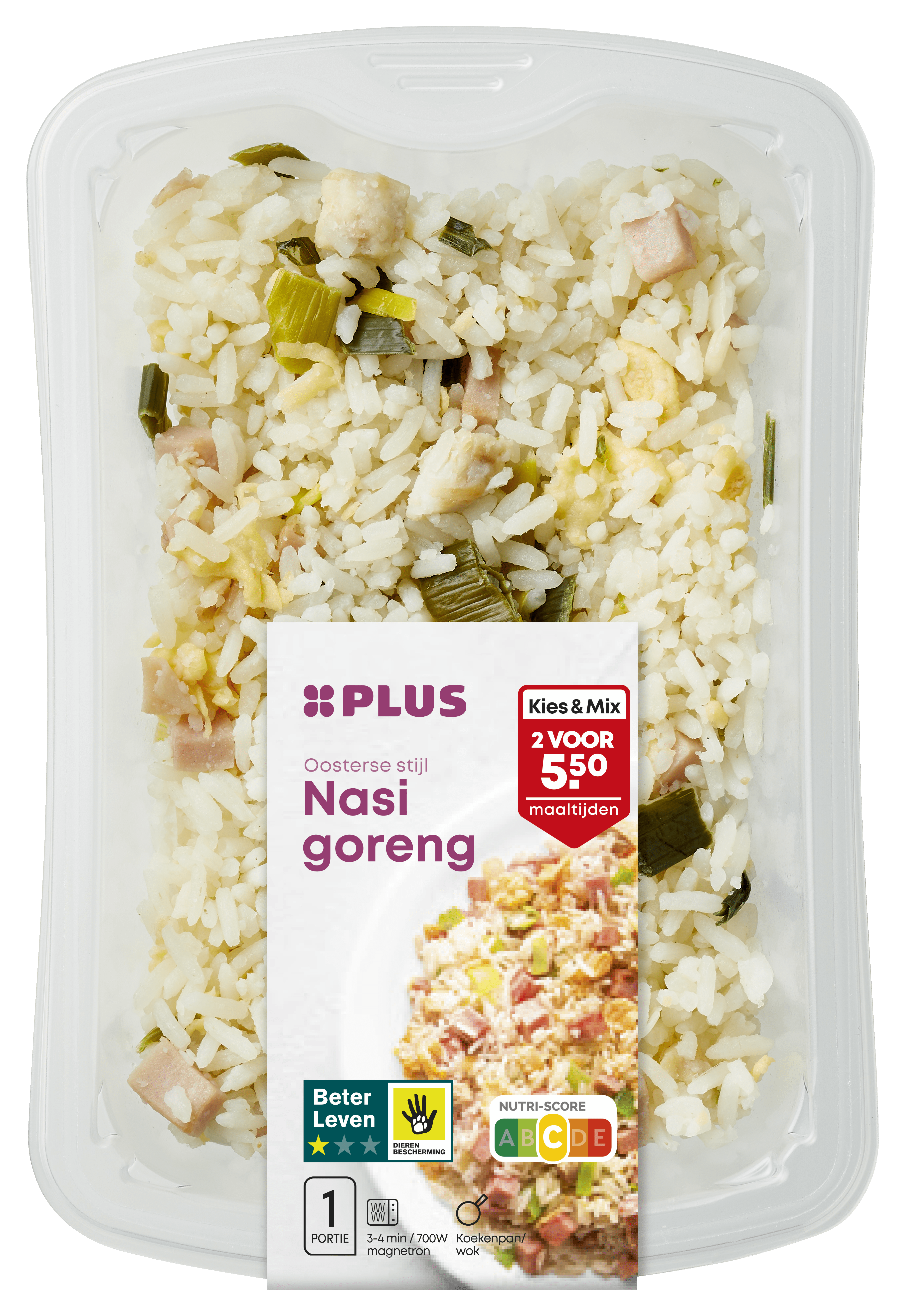 Gebakken rijst met ham, varkensvlees, ei en prei