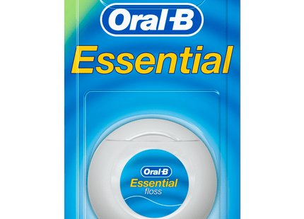 Oral-B Essential Floss reinigt Bereiche, die Ihre Zahnbürste nicht erreichen kann, und Bereiche, in denen sich Plaque ansammelt. Diese Zahnseide besteht aus einer Kombination aus einer speziell entwickelten Faser und einer Polymerschicht zur einfachen Entfernung von Plaque.