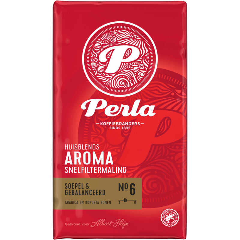 Kaffeeliebhaber können sich mit dem gemahlenen Kaffee Perla Aroma verwöhnen lassen. Schön ausgewogen, voll und rund im Geschmack und Duft. Für die perfekte Tasse Kaffee.