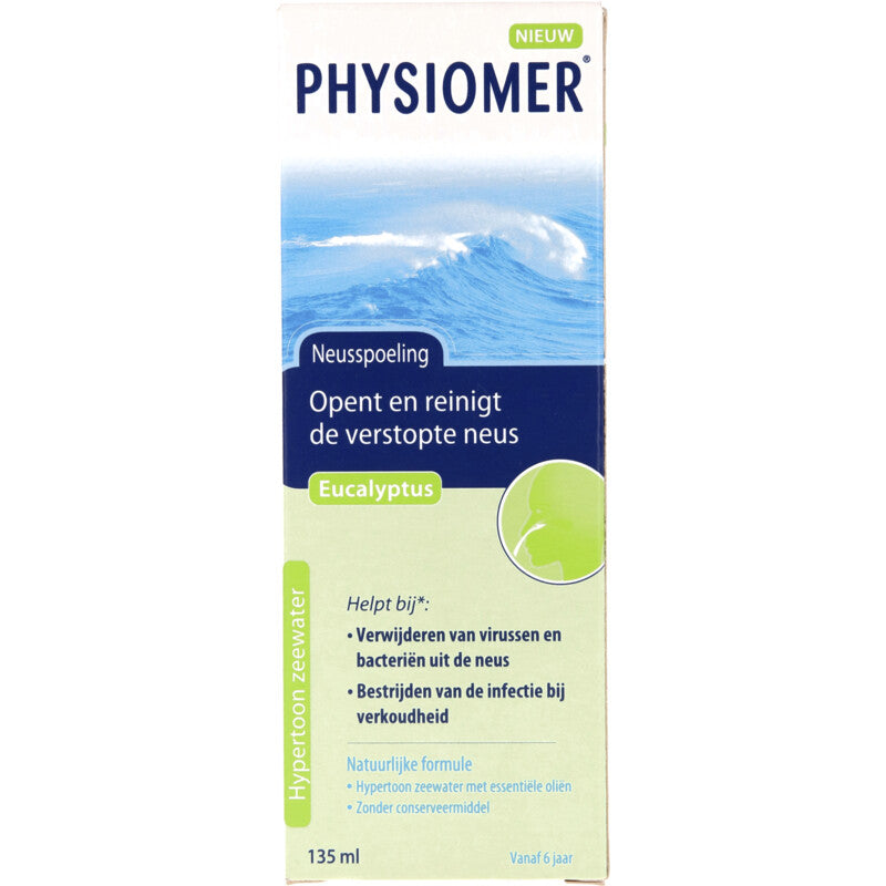 Last van een verstopte neus? physiomer eucalyptus opent effectief de verstopte neus binnen 3 minuten.Opent de verstopte neus binnen 3 minutenHelpt virussen en bacterien te verwijderenReinigt de neus en helpt de infectie te bestrijden bij verkoudheidBevat eucalyptus en wilde munt voor een verfrissend gevoel