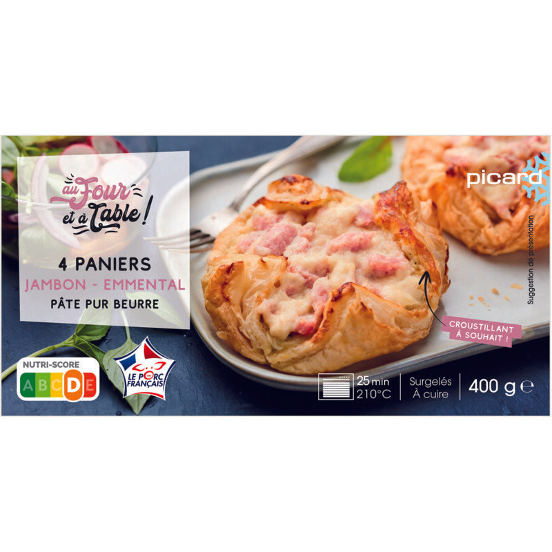 4 bladerdeegmandjes, mooi bruin gebakken na het bakken, belegd met reepjes superieure gekookte ham en een romige saus op basis van room en geraspte Emmentaler kaas.Een ultra-gourmet en royaal receptEen royale, smeltzachte vullingIdeaal met een groene salade
