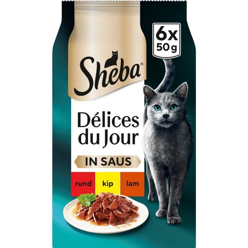 Sheba Délices du Jour in Soße werden aus hochwertigen Zutaten, feinen Hähnchen-, Rind- und Entenstücken zubereitet und immer frisch in kleinen, einfachen Portionen serviert. Purer Genuss für Ihre Katze! * Feine Hähnchen-, Rind- und Entenstücke in einer leckeren Sauce * Handliche Portionsbeutel à 50 Gramm * Ohne künstliche Farb-, Konservierungs- oder Aromastoffe