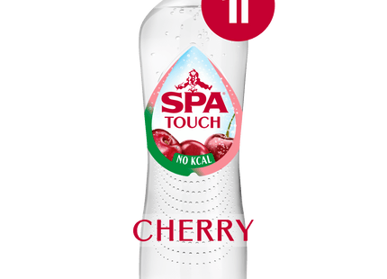 Spa Touch, Puur Bruisend water met een subtiele smaak van kers. No kcal en zonder suikers, zoetstoffen of andere toevoegingen. Uitsluitend bestemd om Spa® dranken te bevatten. 100% RECYCLED and recyclable bottle.