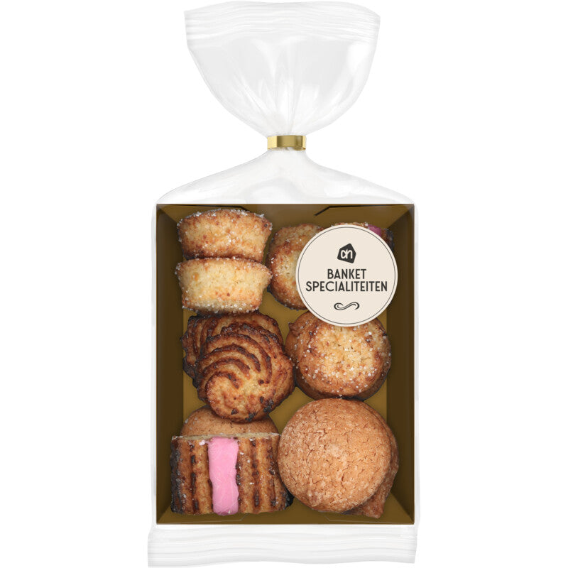 * Mischung aus 4x gezuckertem Waisenmopp, 4x Makrone, 2x Palastbankett mit Zuckerdekor und 2x Brüsseler Bankett.