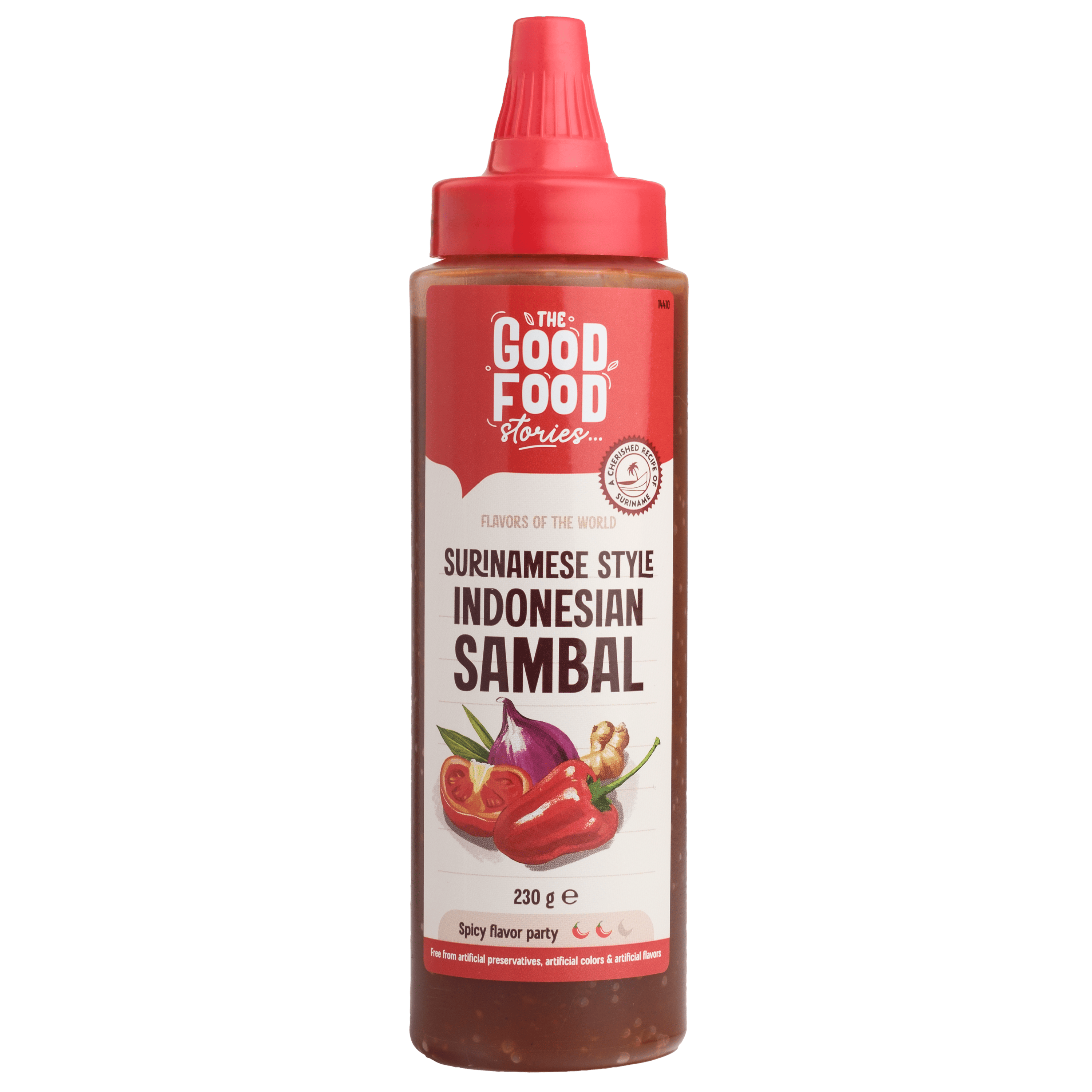 Ingrediënten: water, gebakken ui (25%), (ui, zonnebloemolie), suiker, tomatenpuree (6%), laos, SOJAsaus (water, SOJAbonen, TARWE, zout), habanero chilipeper puree (4%) (chilipeper, zout, zuurteregelaar: E260), gemodificeerd maïszetmeel, knoflookpuree, koolzaadolie, zuurteregelaar: E260, E330: gemberpuree, suikerrietmelasse, gemalen laurierblad, uipoeder. Kan bevatten: NOTEN, PINDA'S en SESAM.