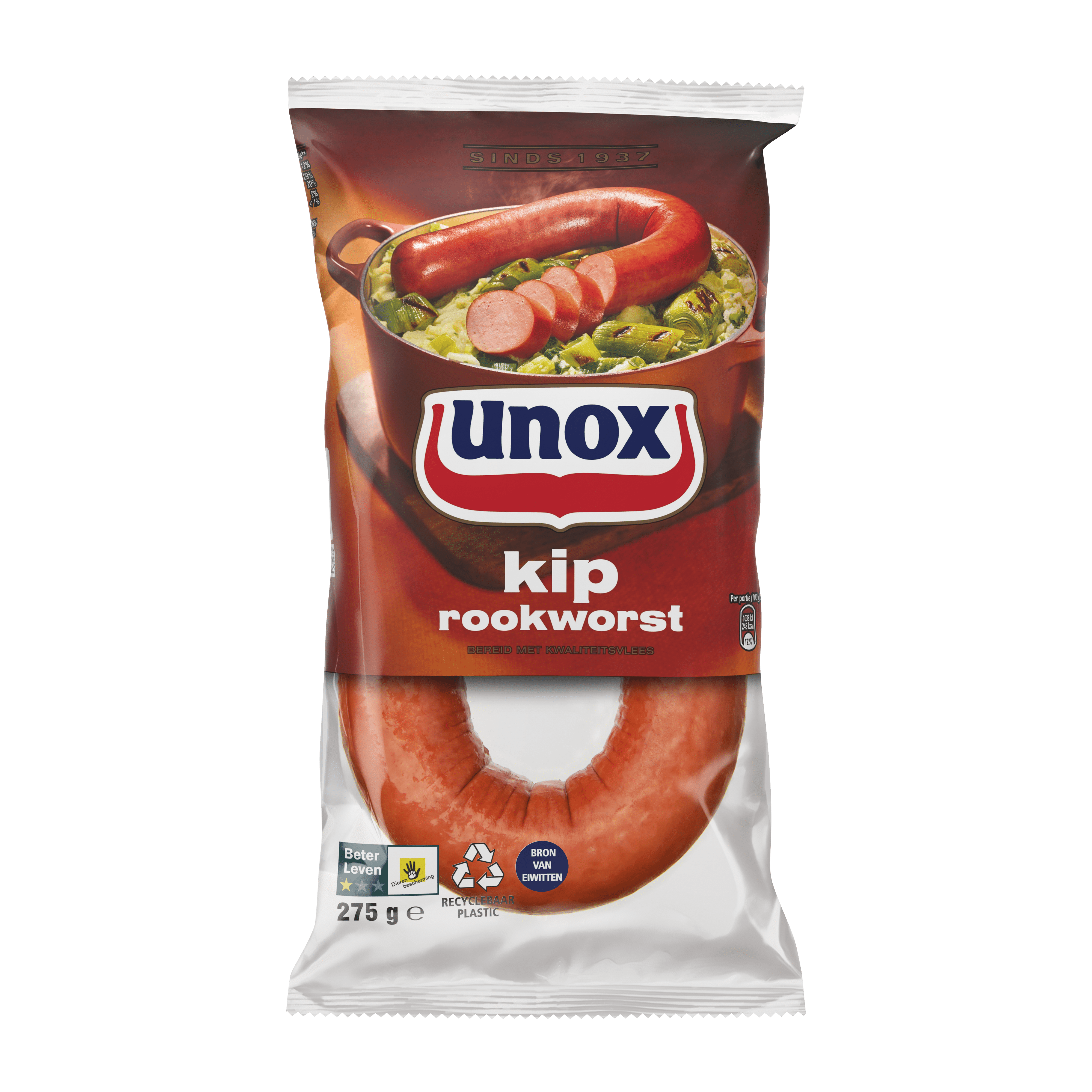 Hoe het ook zij, vanaf 1937 worden onder de merknaam Unox de lekkerste rookworsten gemaakt. Wij geloven dat de lekkerste producten alleen gemaakt kunnen worden van de beste ingrediënten en daarom werken wij continu aan het verbeteren van onze producten. De verpakking van deze rookworst is bovendien gemaakt met recyclebaar plastic. Zo zorgen wij ervoor dat ook de komende generaties op een verantwoorde manier kunnen genieten van onze producten.