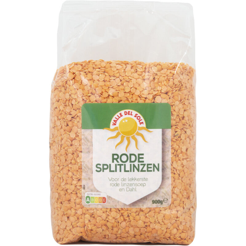 Ingrediënten: Rode splitlinzen. Kan sporen van SOJA en GLUTEN bevatten.