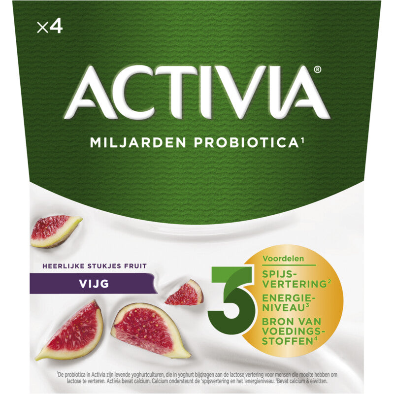 Activia yoghurt vijg is een heerlijke combinatie van milde yoghurt en stukjes vijg. Ideaal voor een lekker begin van de dag of als tussendoortje. Milde yoghurt met een heerlijk frisse vijgsmaak en een bron van calcium. Bevat miljarden probiotica. Zonder kunstmatige kleurstof, smaakstof en conserveermiddelen. Langzaam gefermenteerd met een unieke mix van 5 natuurlijke fermenten. Of je nu houdt van naturel, fruit, granen of een combinatie daarvan: Activia heeft een ruim assortiment met bijzondere smaken, zodat je lekker kunt variëren. Op welk moment dan ook: bij het ontbijt, tussendoor of als afsluiting van je dag. Activia, je goed voelen begint van binnen.