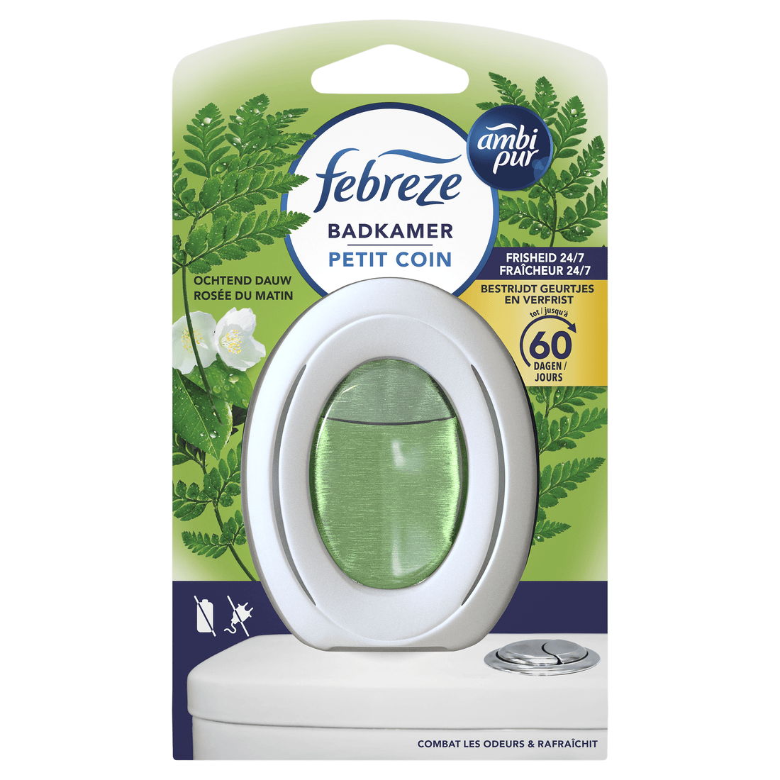 Onze eerste niet-elektrische luchtverfrisser voor badkamer & toilet elimineert onophoudelijk niet alleen geuren uit de lucht, maar voorkomt ook dat ze op zachte oppervlakken zoals handdoeken, badmatten of douchegordijnen blijven hangen. Ambi Pur Badkamer maakt gebruik van de unieke Odour ClearTM-technologie en levert tot 60 dagen lang continue frisheid, zodat uw badkamer altijd klaar is voor gasten. Ambi Pur Badkamer gebruikt geen elektriciteit of batterijen, is handig en gebruiksvriendelijk, en is beschikbaar in verschillende geuren.