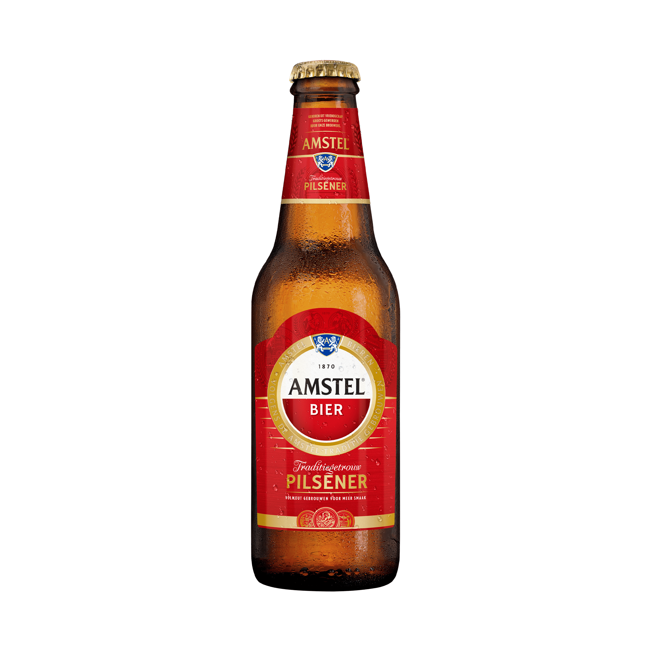 Amstel Pilsener Amstel bier wordt sinds 1870 met liefde gebrouwen voor al die onvergetelijke momenten in het leven. Amstel Pilsener is een volmout bier en wordt gebrouwen met natuurlijke ingrediënten. Het resultaat is een helder goudgeel bier met een volle, toegankelijke smaak en een stevige schuimkraag. Het perfecte bier om van te genieten en te delen met vrienden.