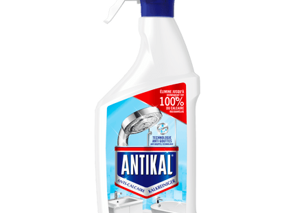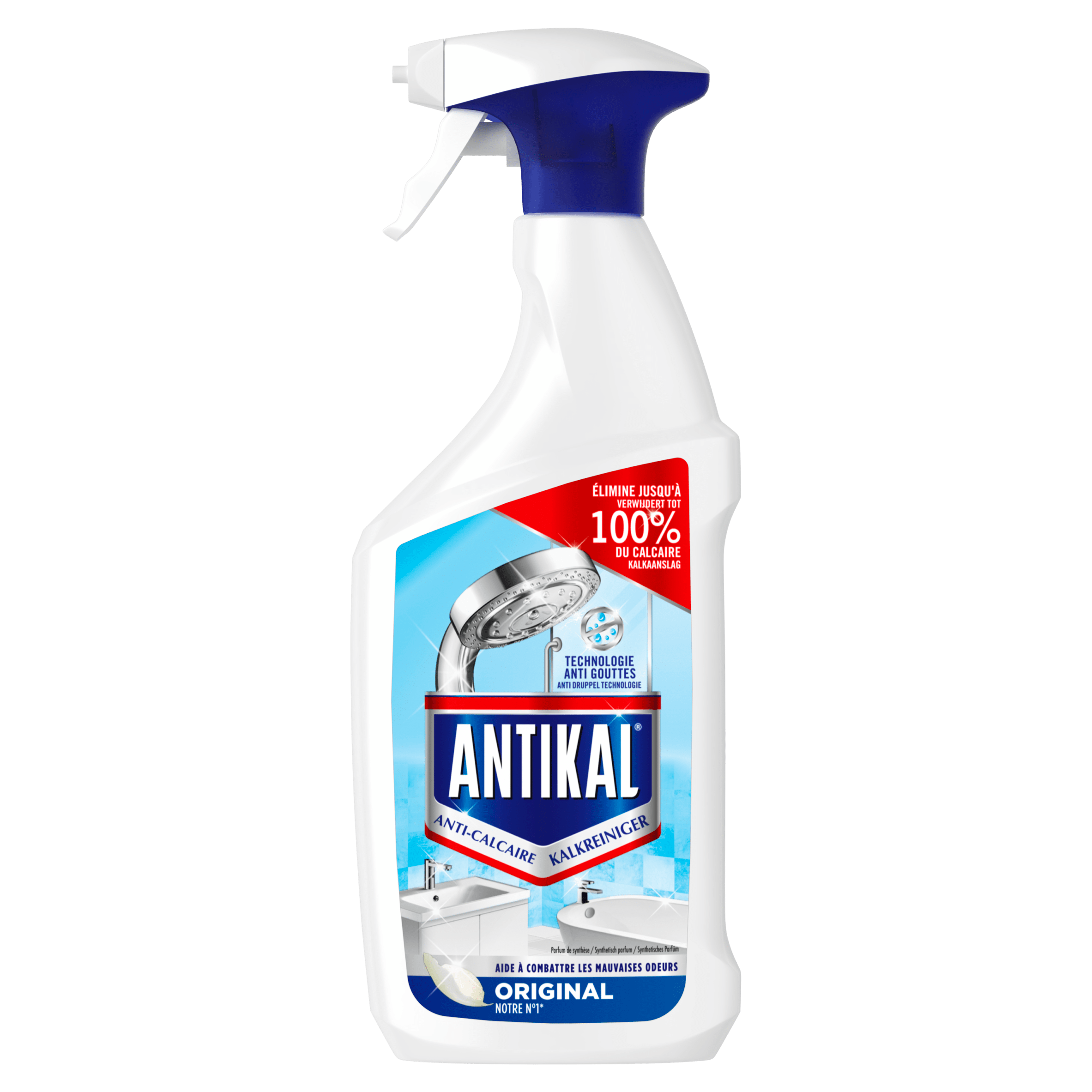 Antikal Original verwijdert niet alleen kalkaanslag, zeepresten en watervlekken, maar voorkomt ook de terugkeer van kalkaanslag dankzij de anti-druppel technologie. Ideaal voor regelmatig gebruik in de badkamer voor een stralend fris oppervlak, elke dag weer. Zijn speciale formule creëert een barrière om het terugkomen van watervlekken te voorkomen, zelfs op plekken met hard water. De formule respecteert oppervlakken, zodat het elke dag gebruikt kan worden.