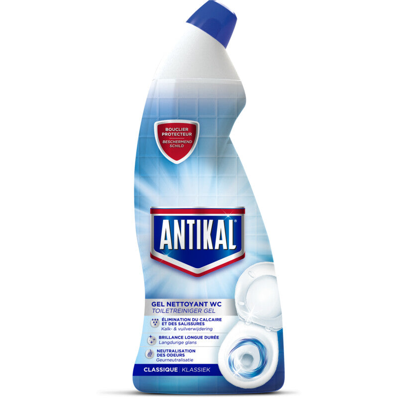 Ontdek Antikal toiletreiniger wc gel. Alle voordelen van een wc reiniger in een product! Nummer een tegen kalkaanslag voor je toilet Sluit geur in in plaats van te maskeren Langdurige frisheid