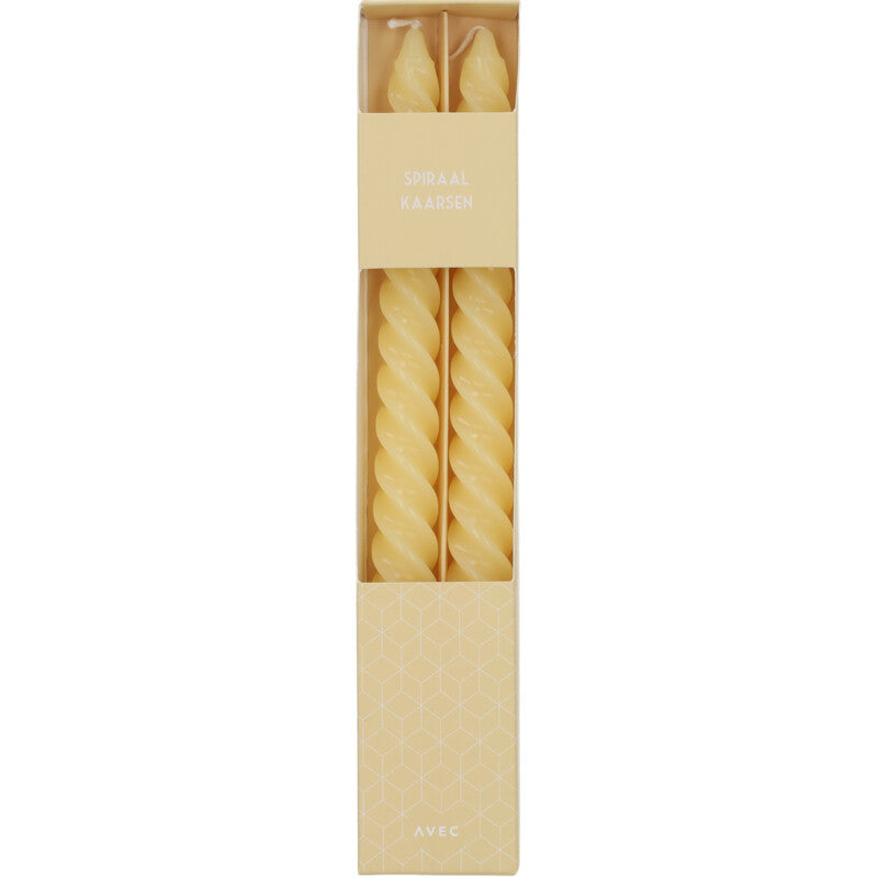 Decoratieve kaarsen voor een sfeervol gedekte tafel.Te gebruiken in een kandelaar of dinerkaarshouder25cm x 2.2cmSpiraal effect2 stuks