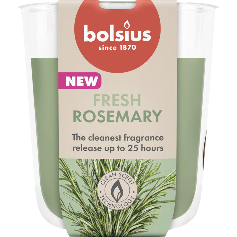 Bolsius true scents - geurkaars in glas - rosemary - groen - klein.De zuiverste geurafgifte tot 25 uurCleanscent technologieZonder palmolie25% plantaardige wax