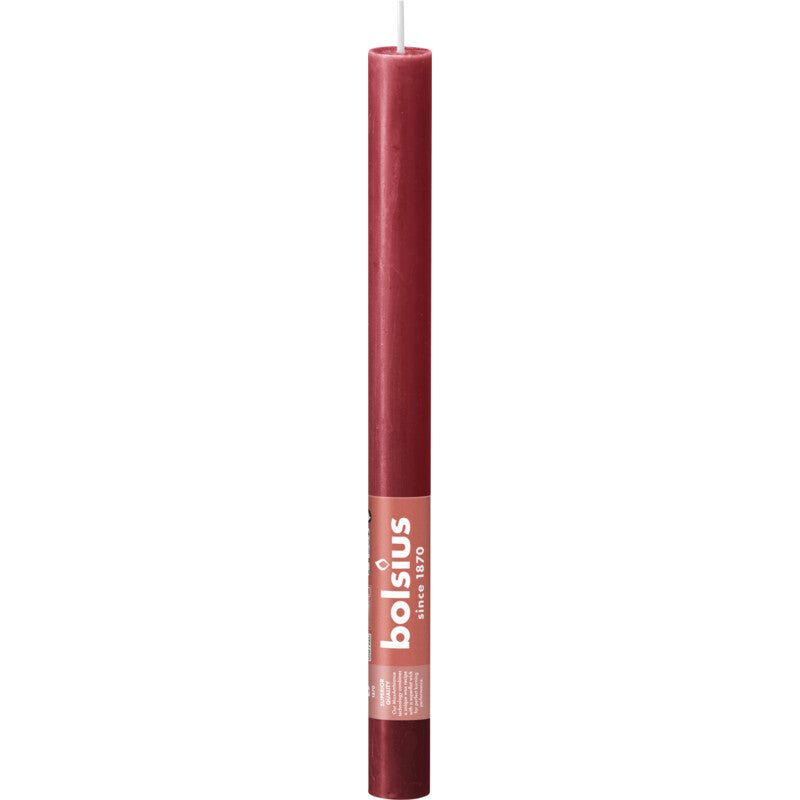 Bolsius - dinerkaars rustiek - 27cm - rood - in doos van 9 stuksPerfecte vlamMet natuurlijke vegan waxZonder palmolieZonder dierlijk vet
