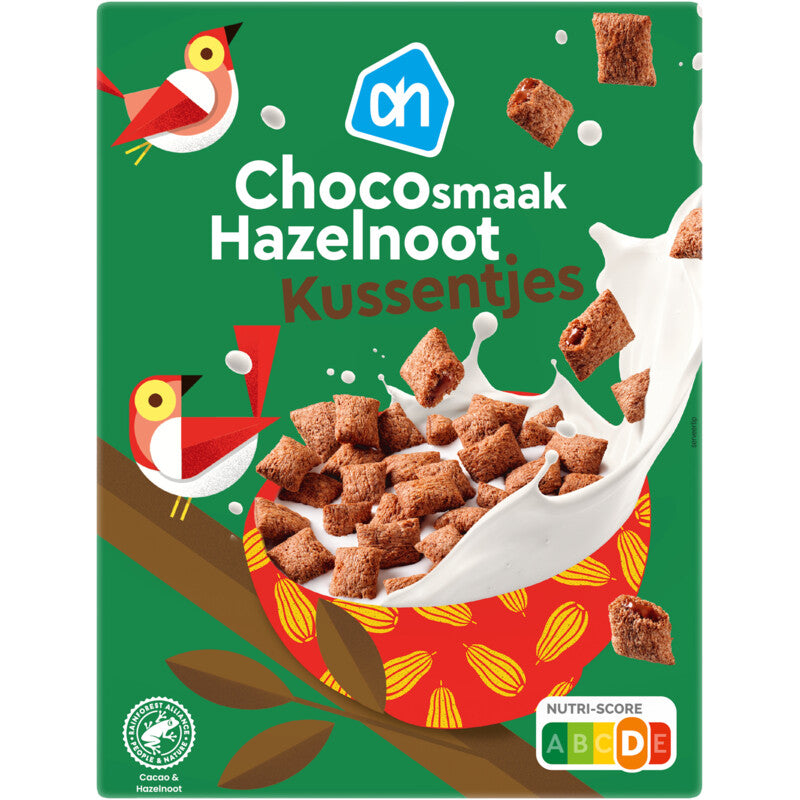 Ingrediënten: 23% tarwebloem, suiker, 19% volkoren havermeel, 15% rijstgriesmeel, plantaardige olie (zonnebloem, raap), maïszetmeel, 5,7% cacaopoeder°, 1,7% hazelnootpasta°, 1,3% tarwezemel, mageremelkpoeder, 0,7% cacaoboter°, zout, emulgator (lecithinen [E322]), vitaminen (B3, B5, B6, B2, B1, foliumzuur, B8, B12), natuurlijk aroma (hazelnoot°), antioxidant (tocoferolrijk extract [E306]), ijzer.