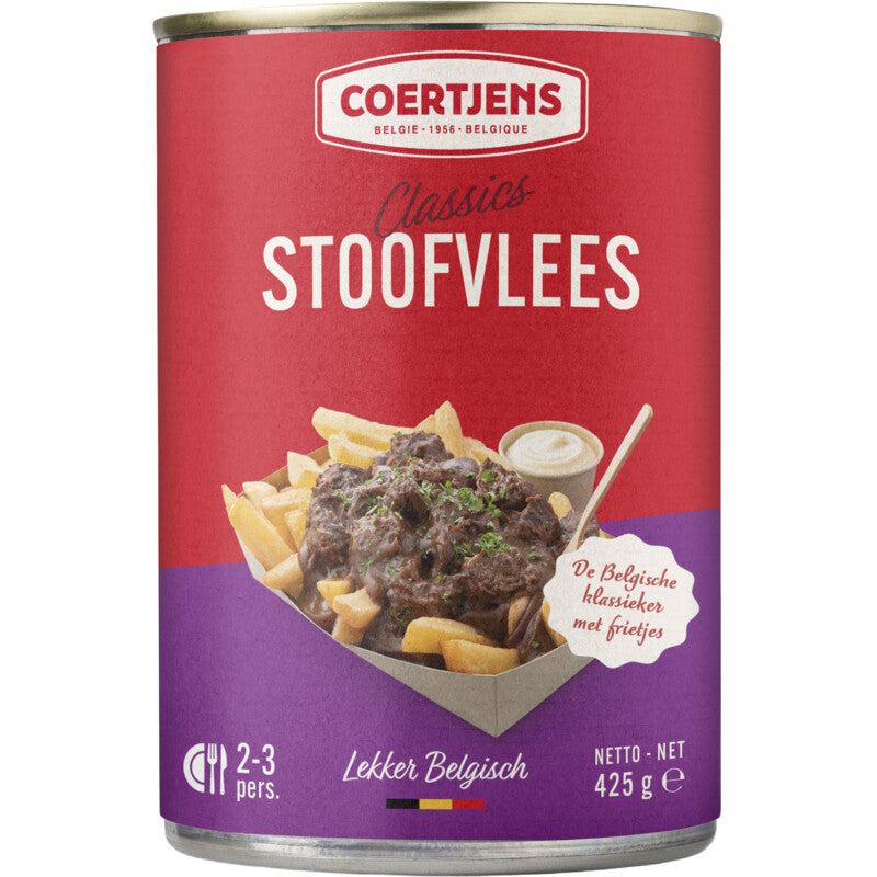 Heerlijk vlaams stoofvlees van coertjens, topkwaliteit, eenvoudig en snel te bereiden en duurzaam verpakt. Topkwaliteit: enkel gecontroleerd vlees van goede kwaliteit Snel en eenvoudig: opwarmen tot net onder kookpunt en klaar Duurzaam verpakt: geen plastic maar 100% recycleerbaar blik Sterilisatie zorgt voor een lange bewaartijd zonder bewaringsmiddelen