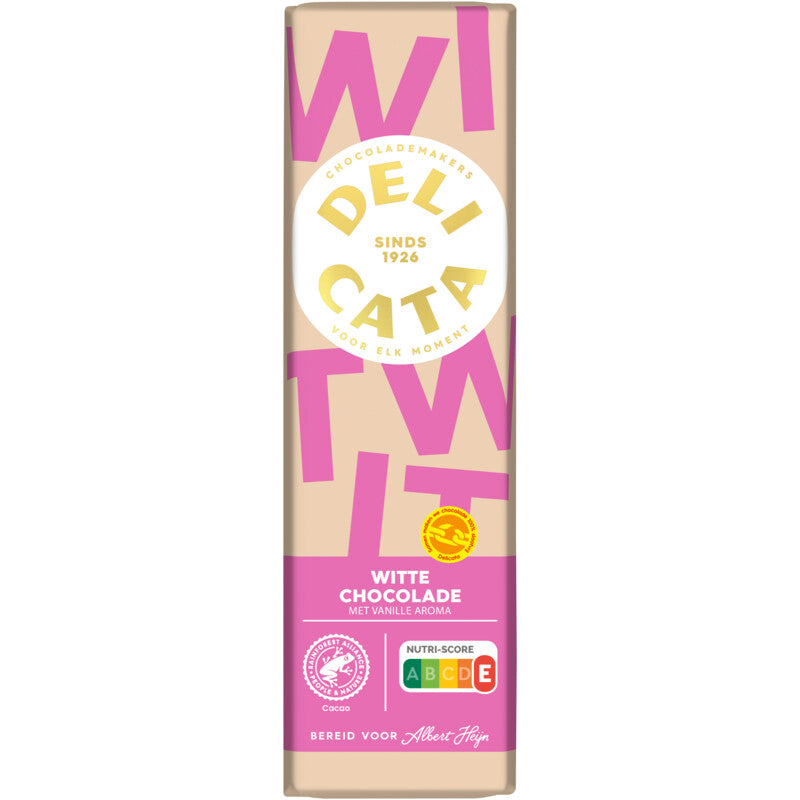 Deze romige witte chocolade van Delicata is onweerstaanbaar! Gemaakt van Belgische chocolade Lekker voor bij de koffie of thee Met Rainforest Alliance gecertificeerde cacao Deze romige witte chocolade van Delicata is onweerstaanbaar! Gemaakt van Belgische chocolade Lekker voor bij de koffie of thee Met Rainforest Alliance gecertificeerde cacao