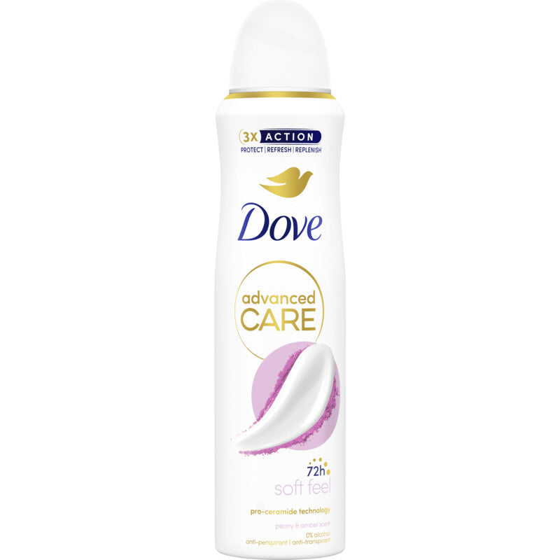 Dove advanced Care soft feel anti-transpirant deodorant spray beschermt tegen zweet, hydrateert en maakt je huid zachter en gladder. Dove advanced Care soft feel anti-transpirant deodorant spray Verzorgt en hydrateert de huid en biedt tot 72 uur bescherming tegen zweet Dove soft feel deo laat je huid zachter en gladder aanvoelen De spray bevat een verbeterde formule met triple moisturising technologie Over Dove advanced Care anti-transpirant: Dove advanced Care soft feel anti-transpirant deodorant spray verzorgt je okselhuid optimaal waardoor deze voelbaar zachter aanvoelt en zichtbaar gladder is. Soft feel heeft een heerlijk warme, luxueuze geur van pioenrozen en amber. De Dove advanced Care anti-transpiranten maken deel uit van de meest verzorgende lijn van dove, met de verbeterde gepatenteerde formule zijn ze zacht voor de huid, zelfs na het scheren. Het advanced Care assortiment van Dove biedt met de triple moisturising technologie 72 uur bescherming tegen zweet. Hoe te gebruiken? voor het beste resultaat gebruik je onze Dove soft feel anti-transpirant spray na het douchen als je huid droog en koel is. Schud de deodorantbus goed heen en weer, hou de spuitbus op 15 centimeter van je oksel en spray de deodorant ongeveer 2 seconden onder je oksel. Dove biedt naast anti-transpiranten ook deodoranten aan. Beide geven een langdurig fris gevoel en hebben een verzorgende werking voor de kwetsbare okselhuid. Anti-transpiranten bevatten aluminiumzouten die de hoeveelheid zweet verminderen en ervoor zorgen dat je oksels droog blijven, zodat onaangename geurtjes geen kans krijgen. Deodoranten bevatten geen aluminiumzouten, maar wel actieve ingredienten die ongewenste geurtjes bestrijden. Dus welke je ook kiest, je kunt altijd vertrouwen op bescherming, frisheid en heerlijk zachte, gladde en verzorgde oksels. Het verhaal van dove: Dove zorgt voor iedereen: wanneer het om huidverzorging gaat, willen wij van Dove je producten geven waar je op kunt vertrouwen. Maar de zorg van Dove gaat verder dan alleen onze producten. We willen zorg dragen voor alle vrouwen, we willen schoonheidsnormen opnieuw definieren en iedereen helpen om schoonheid en lichaamsbeeld op een positieve Manier te ervaren. Onze missie is ervoor te zorgen dat de volgende generatie opgroeit met een positief beeld over zichzelf en hun uiterlijk. Via het Dove self-esteem project willen we ervoor zorgen dat er in de wereld waarin deze generatie terechtkomt geen plaats is voor onrealistische schoonheidsidealen. Hoe we onze producten maken en wat erin gebruikt wordt, de impact die we hebben op onze planeet en het streven naar een betere, duurzamere Manier van leven is belangrijk voor ons.
