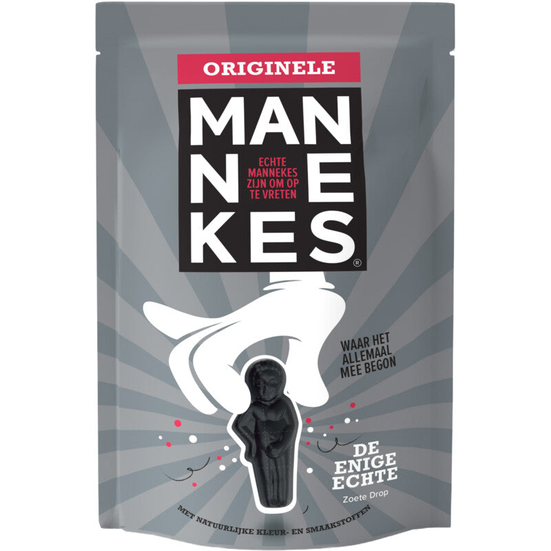 Originele echte Mannekes zijn lekker vol van zichzelf. Helemaal het heertje en overheerlijk. Zachte, zoete opscheppers en lekker vol van zichzelf. Maar dat mag als je zo origineel bent! De heerlijke authentieke zachte zoete drop Echte Mannekes zijn om op te vreten De enige echte zoete drop Met natuurlijke kleur- en smaakstoffen