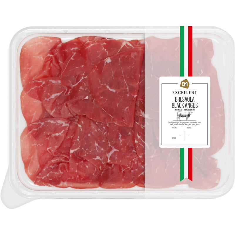 Droog gezouten bresaola gemaakt van black angus-vlees. Black angus vlees Ook is deze gedroogde delicatesse heerlijk als onderdeel van een grote borrelplank of gewoon op een broodje Droog gezouten Bresaola gemaakt van Black Angus-vlees Black Angus vlees Ook is deze gedroogde delicatesse heerlijk als onderdeel van een grote borrelplank of gewoon op een broodje