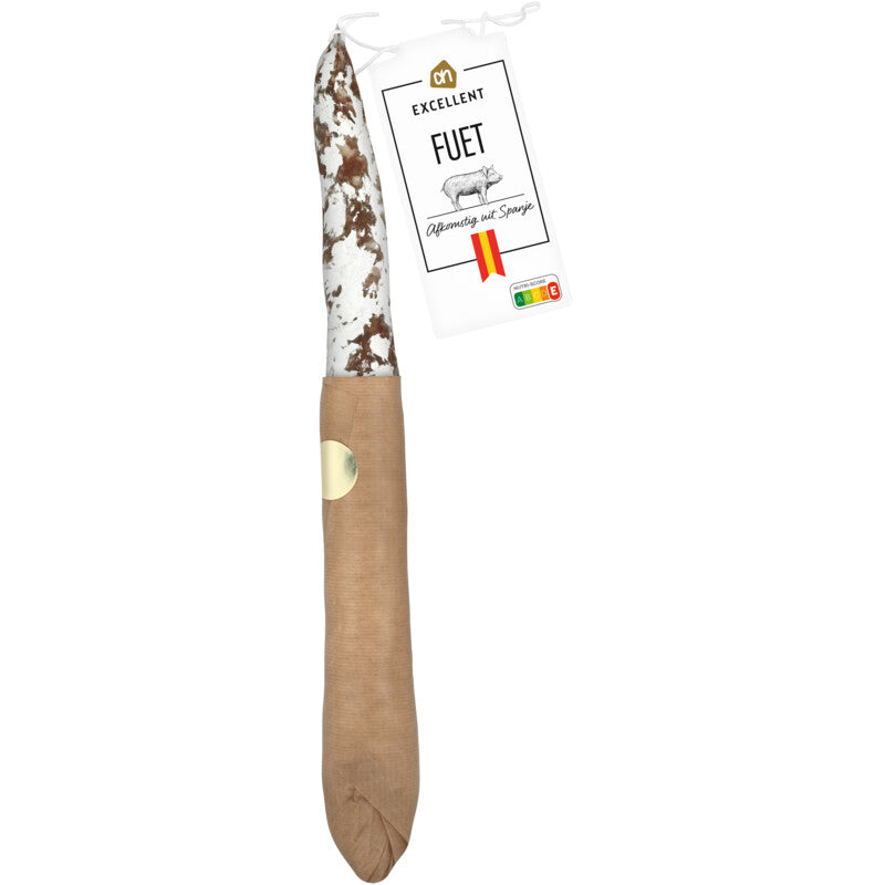 De trots van Catalonië! Fuet wordt gemaakt van varkensvlees en vervolgens gedroogd. Een heerlijk worstje voor op de borrelplank. Niet voor niets is dit in Spanje een van de meest gegeten worsten. Smaak: gepeperd, licht zoet Herkomst: Spanje De worst wordt 21 tot 23 dagen gedroogd Lekker op een stuk brood bestreken met olijfolie en tomaat Aha'tje! Tijdens het rijpen verliest de fuet wel een derde van zijn gewicht en omvang en krijgt hij zijn karakteristieke lange en dunne uiterlijk. Vandaar zijn naam fuet wat zweep betekent. De trots van Catalonië! Fuet wordt gemaakt van varkensvlees en vervolgens gedroogd. Een heerlijk worstje voor op de borrelplank. Niet voor niets is dit in Spanje een van de meest gegeten worsten. Smaak: gepeperd, licht zoet Herkomst: Spanje De worst wordt 21 tot 23 dagen gedroogd Lekker op een stuk brood bestreken met olijfolie en tomaat