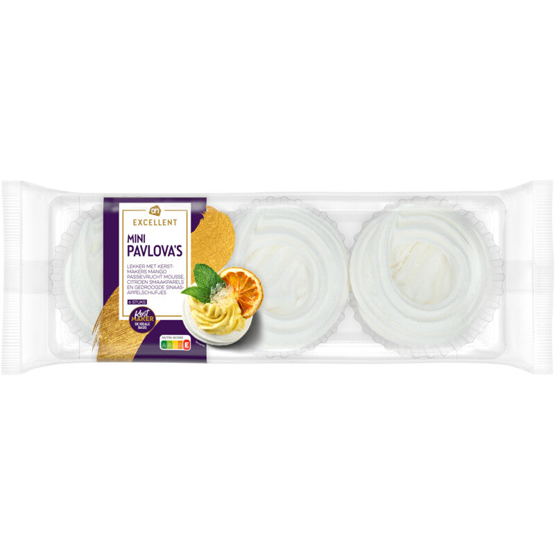 Mini Pavlova's Klassieke kant en klare mini pavlova's, de ideale basis voor een heerlijk, gemakkelijk en feestelijk dessert Inspiratie voor recepten met Mini Pavlova, vind je in de Allerhande, in de Albert Heijn app of op ah.nl