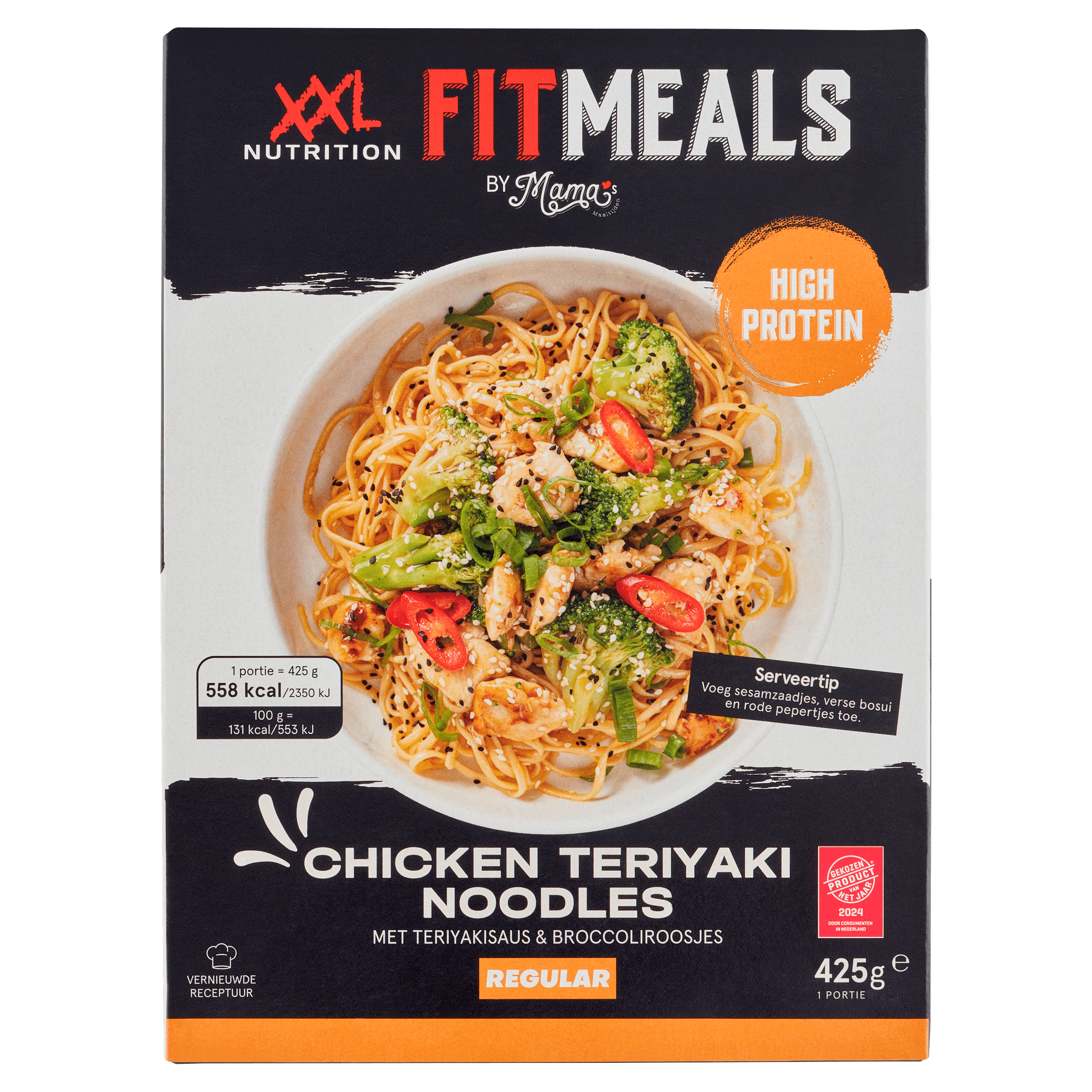 Heerlijke noodles met geroosterde kipfilet in teriyakisaus en geblancheerde broccoliroosjes, diepvries. Voeg zelf wat sesamzaadjes, verse bosui en rode pepertjes toe voor een extra kick op je bord. X-Tra gezond De calorieën, vetten en suikers zijn perfect uitgebalanceerd in vergelijking met reguliere maaltijden. Met deze maaltijd verzeker je jezelf van een gezonde én voedzame maaltijd. X-Tra proteïne Eiwitten zijn belangrijk voor spieropbouw en spierherstel, goed voor ons allemaal. In onze maaltijd zit daarom altijd ruim 30 gram eiwitten. L-Ekker De gerechten zijn gemaakt door mama's van over de hele wereld. Zeer smaakvol, maar er is rekening gehouden met de vereiste voedingswaarden van XXL Nutrition.
