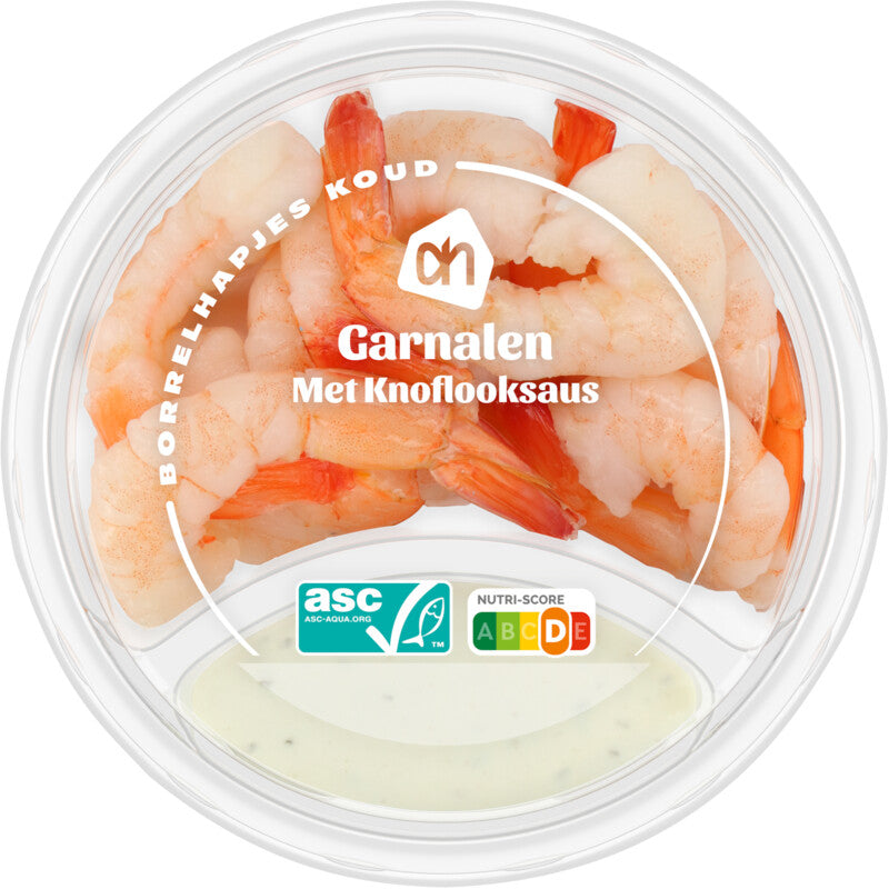 Gekookte, gepelde grote garnalen met een romige knoflook-dipsaus Smaak: romig Perfect voor bij de borrel, of lekker als tussendoortje null Gekookte, gepelde grote garnalen met een romige knoflook-dipsaus. Smaak: romig Perfect voor bij de borrel, of lekker als tussendoortje