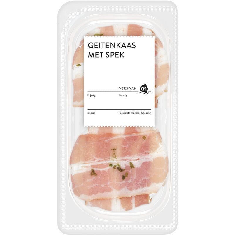 Verse Hollandse geitenkaas in een jasje van ontbijtspek. Zo klaar, ongeveer 5 minuten bakken en serveren maar. Eetbare korst! Smaak: Licht pittig Herkomst: Nederland Gemaakt van: Geitenmelk Eetbare korst! Ahaatje. Snel klaar als voorgerecht met portobello's, knoflook en pijnboompitten.