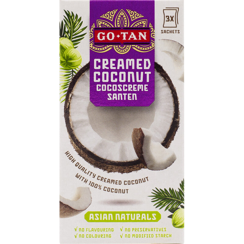 Santen, kokoscreme zonder toevoegingen. 100% natuurlijk Zonder toevoegingen Verpakking bevat 3 sachets van 50g klaar voor gebruik. geschikt voor bereiding in gerechten (curries), dranken en koekjes.
