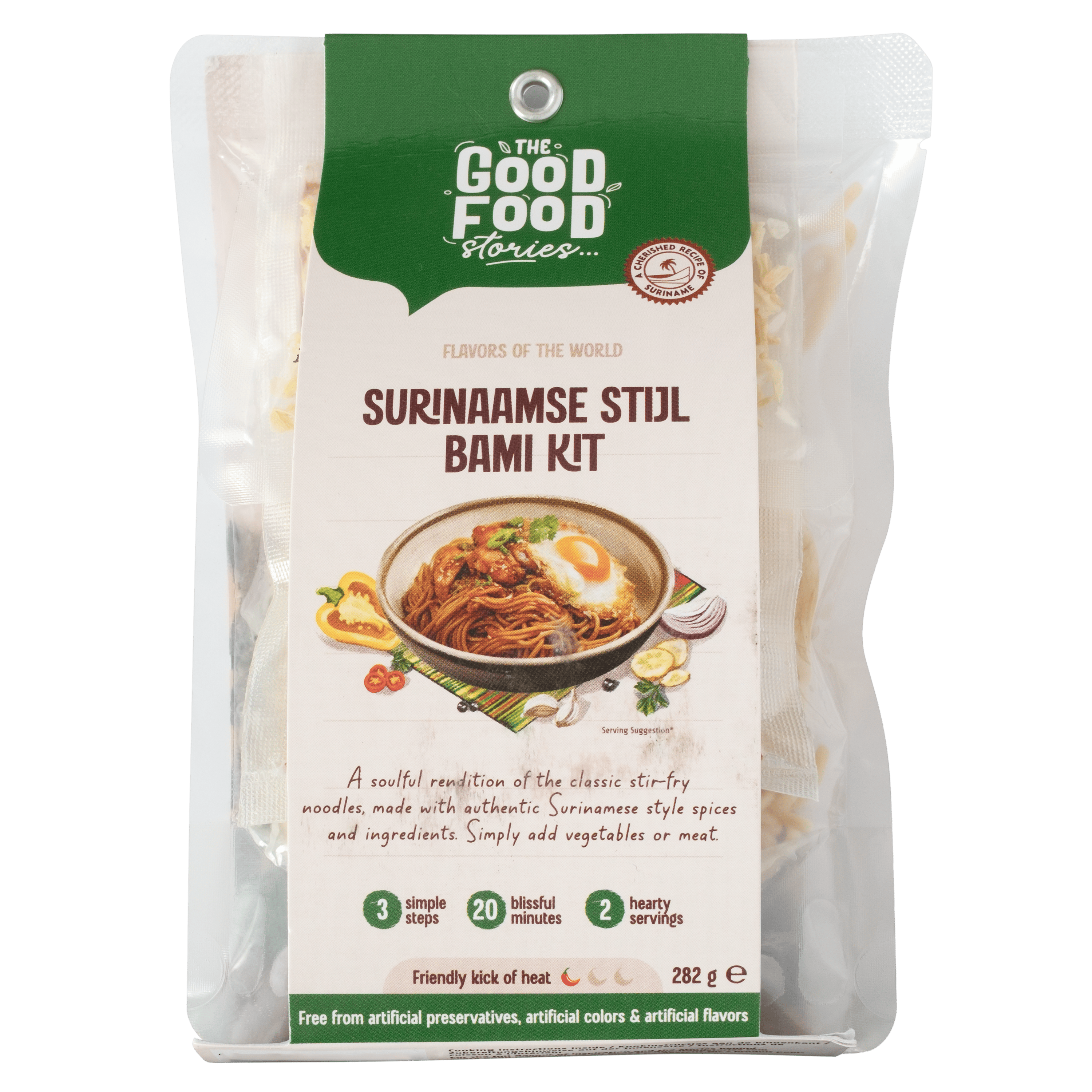 Ingrediënten: Tarwenoedels (82%): water, TARWEgries, zonnebloemolie. Kruidenpasta (16%): ui, tomatenpuree, jaggery (ongeraffineerde rietsuiker), SOJAolie, knoflook, gember, water, gemodificeerd zetmeel, SOJAsauspoeder (SOJAvlokken, maltodextrine, zout), specerijen, zout, tamarinde, VISsaus (ANSJOVIS, zout, suiker, water), kurkumapoeder, citroengraspoeder, kaffirlimoenpoeder,rijstazijn, zuurteregelaar: E330, kleurstof: E150a. Kruidenmix (2%): gedroogde ui, knoflook. Kan bevatten: MELK, PINDA'S, NOTEN, SESAMZAAD, MOSTERD, SELDERIJ, TARWE en GLUTENBEVATTENDE GRANEN.